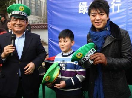 陳光標戴綠帽 與朗朗南京街頭免費派發自行